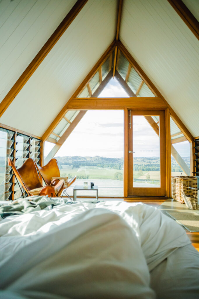 Cabins are surely my favourite thing to shoot for holiday rental market. Most of them are unique, blend in with a nature well and each of them have some sort of story to tell and provide shelter from natures elements. When photographing them I try to put emphasis on natural light streaming through windows, warm interiors, and inviting spaces like wood-burning fireplaces, rustic furniture, and plush bedding. Exterior shots can showcase cabin’s setting within eucalyptus forest, mountain vistas or by a river, or a beach. I would often take these during golden hour or under a starlit sky to emphasise the beauty of the natural surroundings. These photographs aim to evoke a sense of relaxation, adventure, and the simple pleasures of getting away from it all and try inspire viewers to imagine themselves enjoying a peaceful escape.
